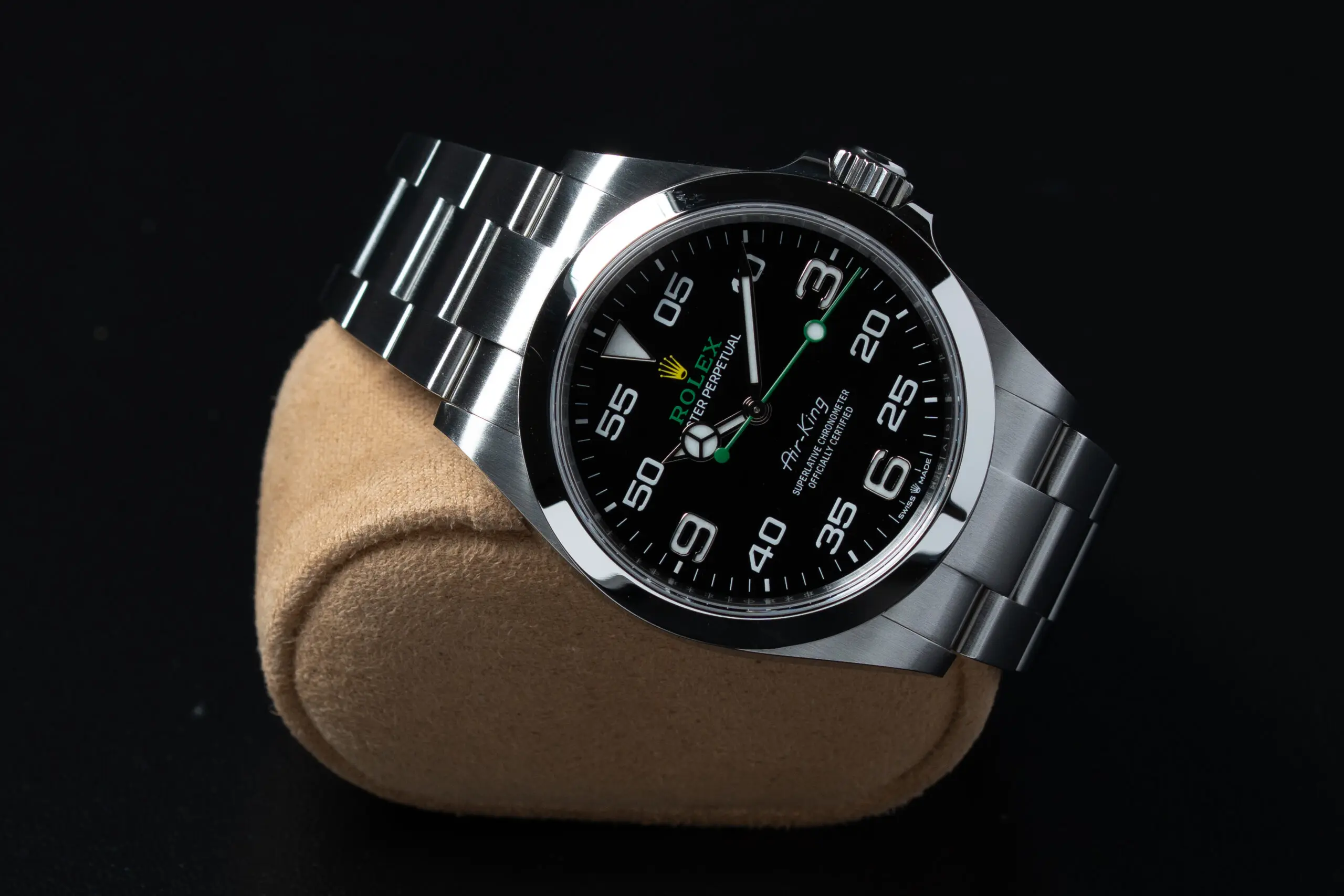 • Dial: Signature Air-King Dial w/Green Seconds Hand
