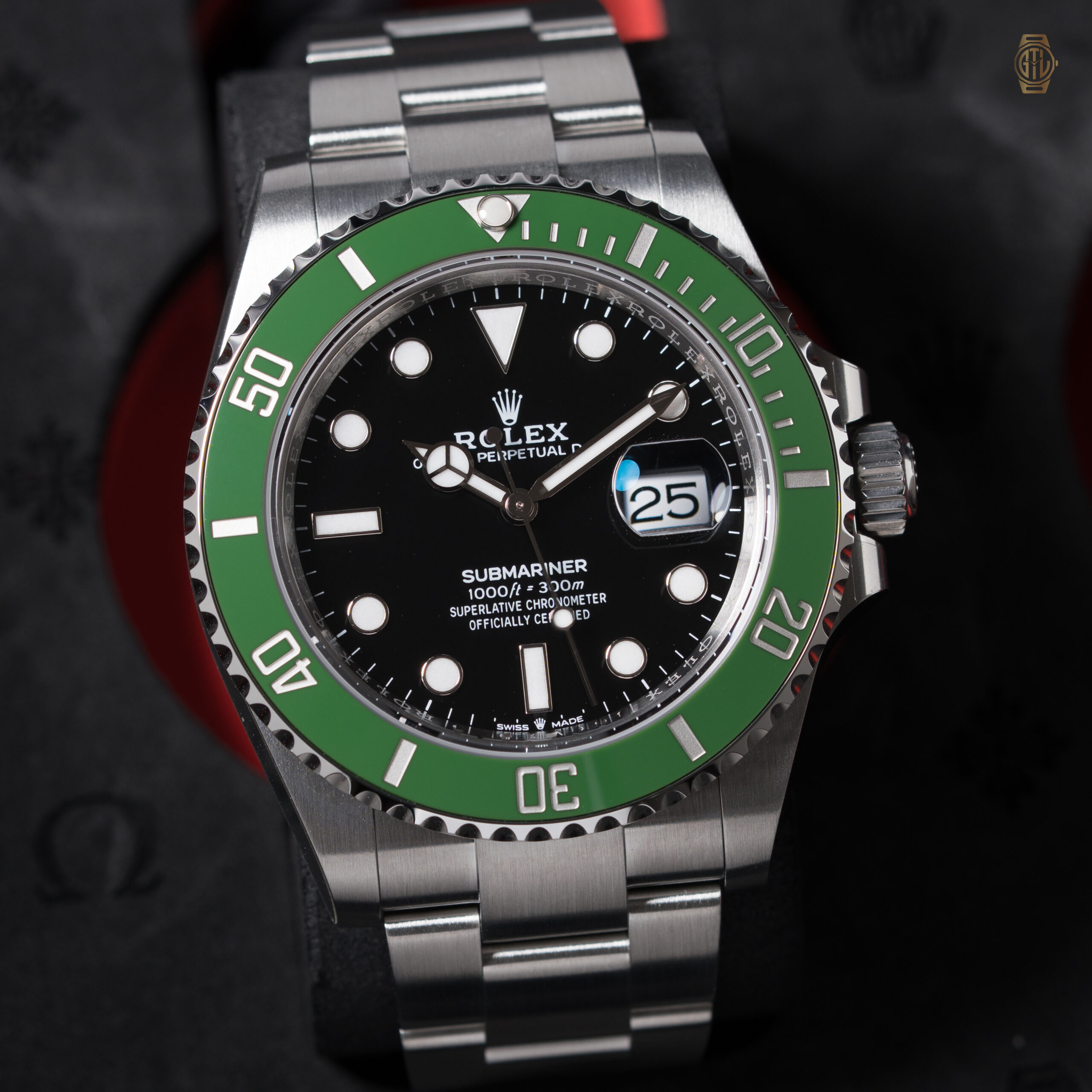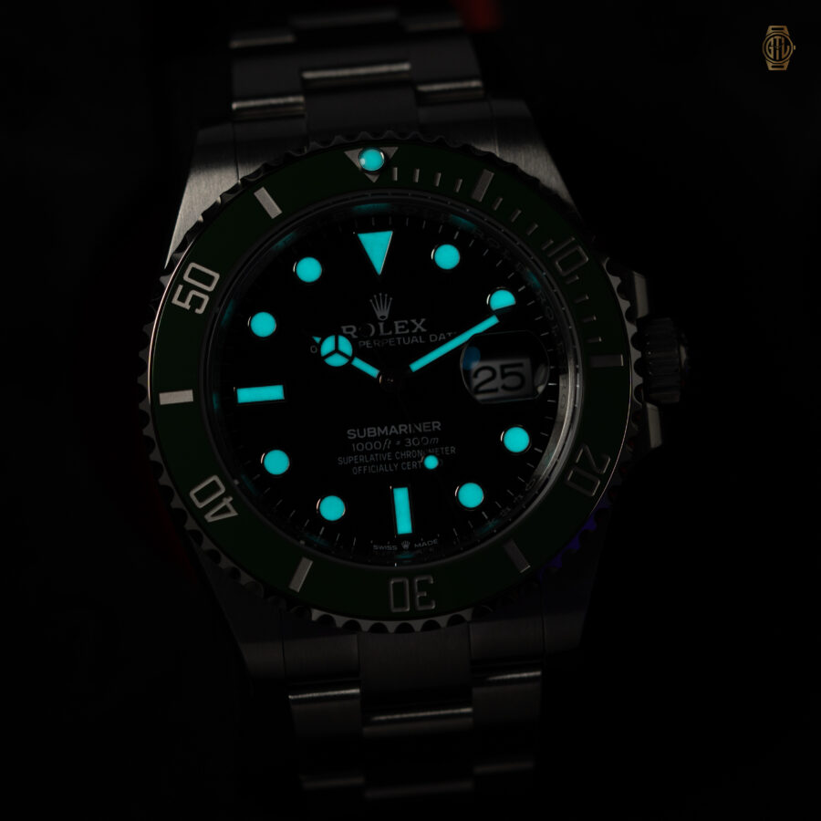 - Green Cerachrom unidirectional rotatable bezel with 60-minute graduations