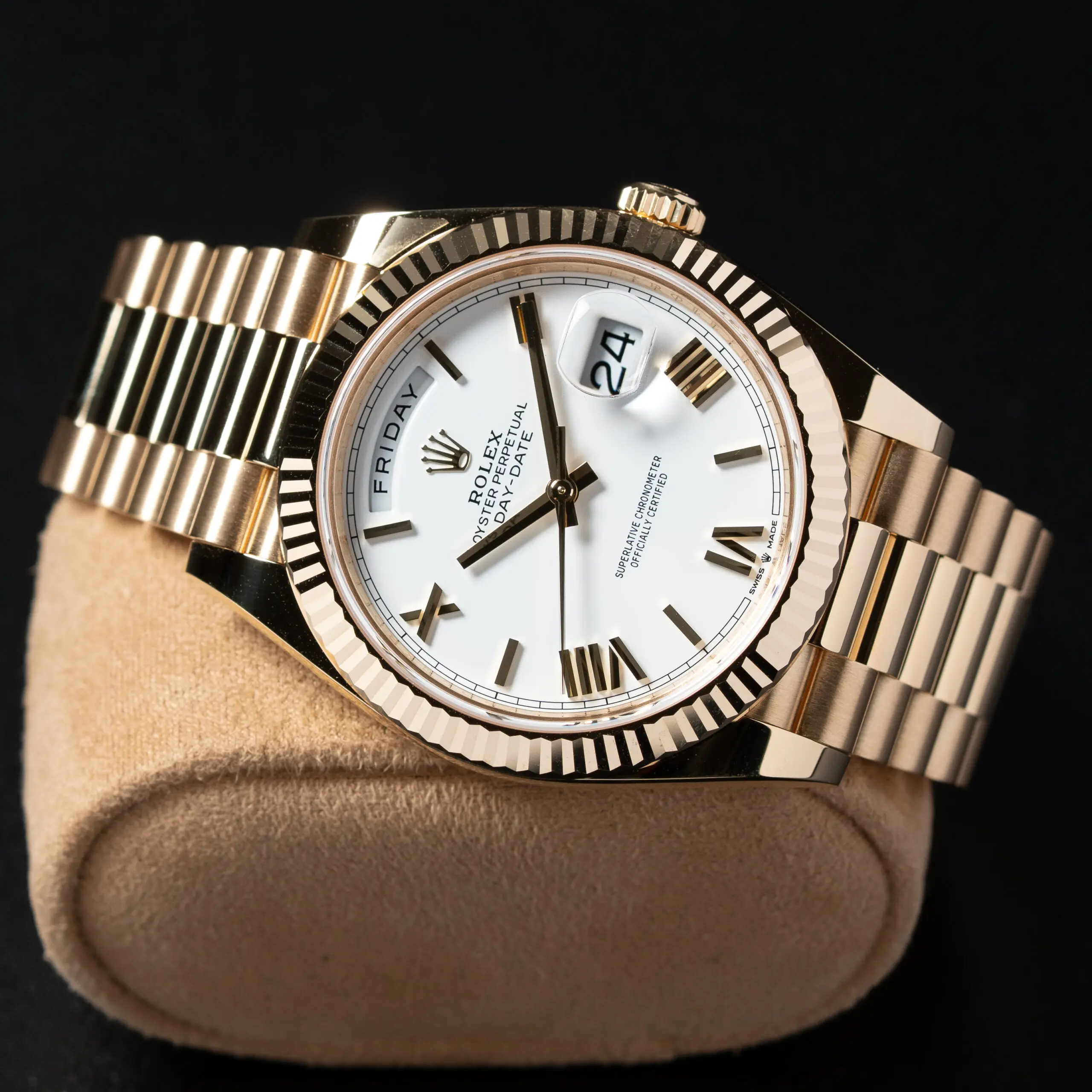 2026 Rolex Day-Date 40mm White Roman Dial Yellow Gold
